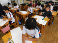 1年生は、先生がテストを返却していました。児童は、返却されたテストを丁寧に受け取っていました。返却を待つ児童も楽しみにしているようでした。